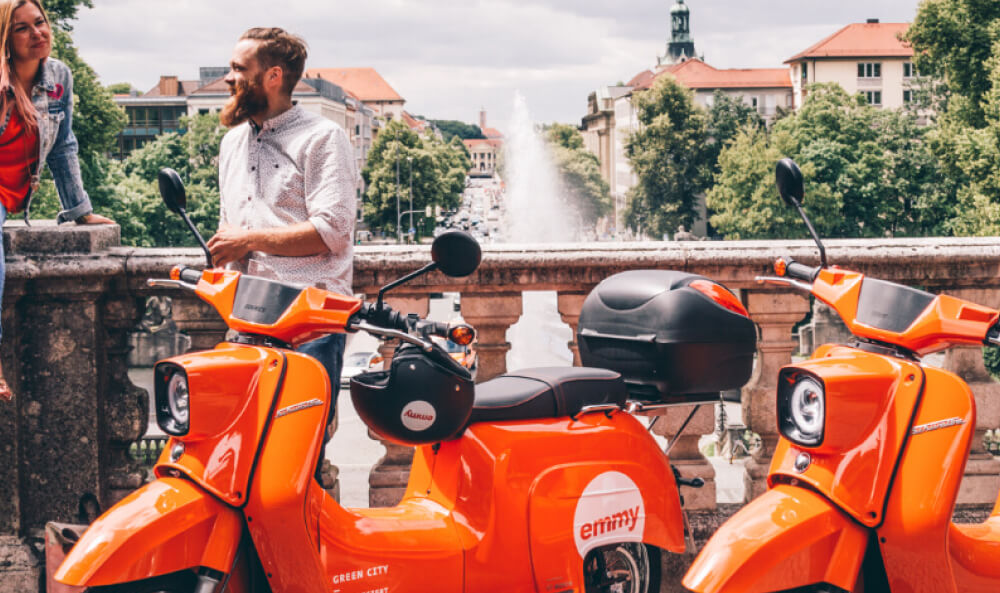 Im Mischmarkt der Sharing Economy und der Elektromobilität haben Valerian Seither und Alexander Meiritz von der Electric Mobility Concept GmbH (kurz: emmy) etwas gewagt, das ihnen ein tiefes Bedürfnis war: Den Flair von Freiheit im Straßenverkehr (inspiriert vom italienischen Straßenleben) mit Nachhaltigkeit und den Mobilitätskonzepten der Zukunft zu verknüpfen. Emmy ist mit der regionalen Verteilung seiner mehr als 3.000 Roller in den vier deutschen Großstädten Berlin, Hamburg, München und Düsseldorf klarer Marktführer in Deutschland. Auch in Wien und Stuttgart hat das Unternehmen nun expandiert. Als Marktpionier für E-Scooter konnte emmy wichtige Erfahrungen sammeln und Know-how aufbauen.