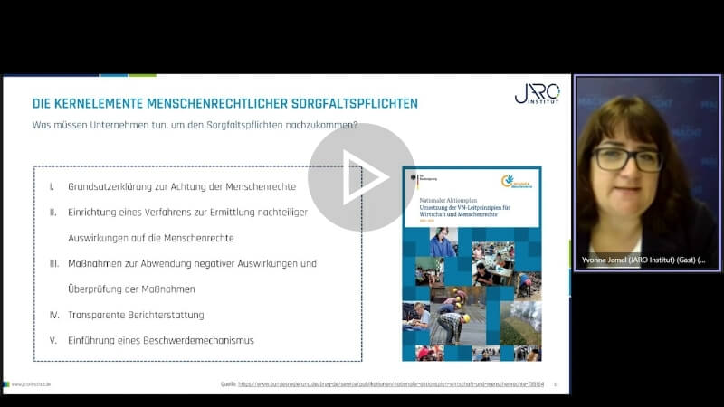 Unsere Expertin Yvonne Jamal, Geschäftsführerin des JARO Institut für Nachhaltigkeit und Digitalisierung e.V. erklärt in diesem Webinar, wieso die Beschaffung die größte Stellschraube für mittelständische Unternehmen in punkto Nachhaltigkeit ist.