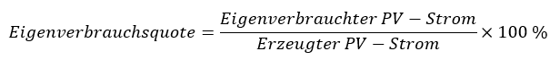 Theoretischer Eigenverbrauchsanteil (in %) = (geschätzter eigenverbrauchter PV-Strom in kWh pro Jahr / erzeugter PV-Strom in kWh pro Jahr) x 100